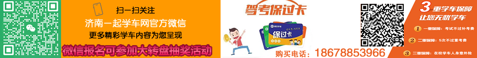 學車報名電話:18678853966    業務咨詢熱線:0531-89684386    學車咨詢QQ:263857128