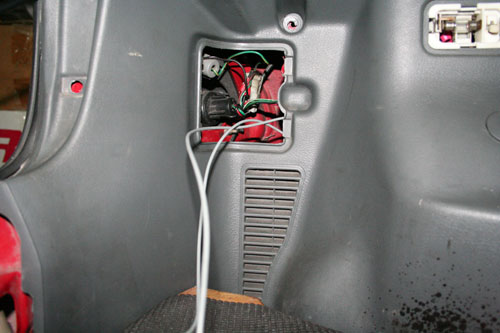 然后再將線路拉至圖中所示之處,并穿過右側飾板,從方向燈開口處拉出。