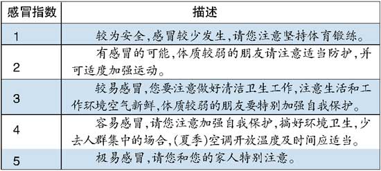 感冒指數(shù)越高就意味著這一時(shí)期患感冒的幾率越高。研究發(fā)現(xiàn),在眾多氣象指標(biāo)中氣溫突變是誘發(fā)感冒的主要因素,其次是風(fēng)速、降水概率、相對(duì)濕度等氣象指標(biāo),這些都會(huì)不同程度地影響人體患感冒的幾率。因此,在感冒指數(shù)高的情況下,要注意預(yù)防感冒。特別值得注意的是,感冒的癥狀有頭暈頭痛、流鼻涕、打噴嚏等,會(huì)使人精神難以集中,開車族一定要預(yù)防感冒,一旦患了感冒,要盡快服藥,如快克感冒膠囊含有金剛烷胺,三九感冒顆粒、銀翹解毒片等是一些中成藥,安全用藥才能盡快消除感冒癥狀,有利于安全行車。